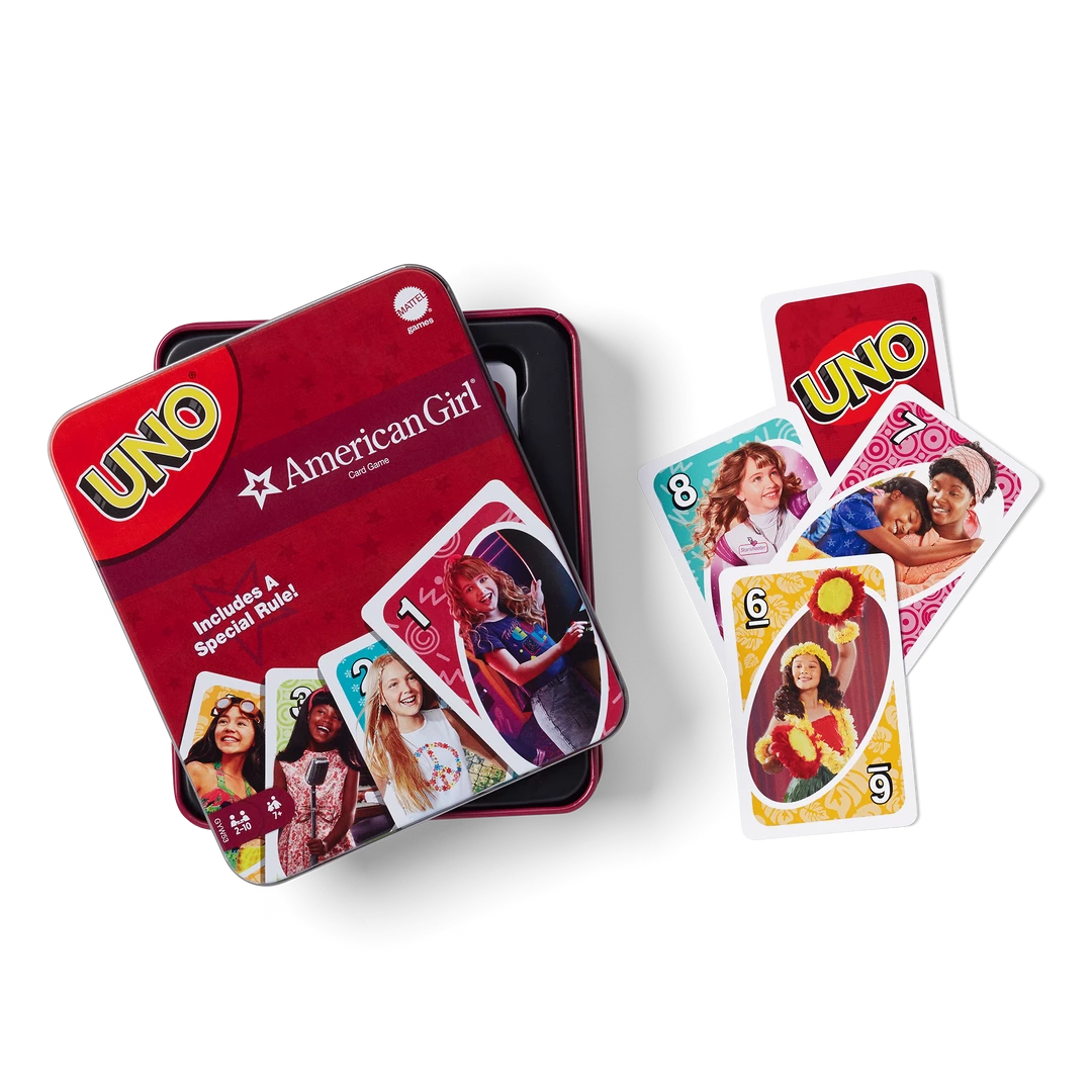 UNO® American Girl® Card Game: An UNO card game designed for 2 to 8 players—the rules are the same, but fun images will make it a favorite of American Girl fans.