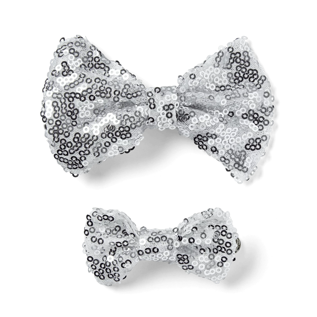 Hairbows for Girls & Dolls: These matching hairbows feature silver sequins.