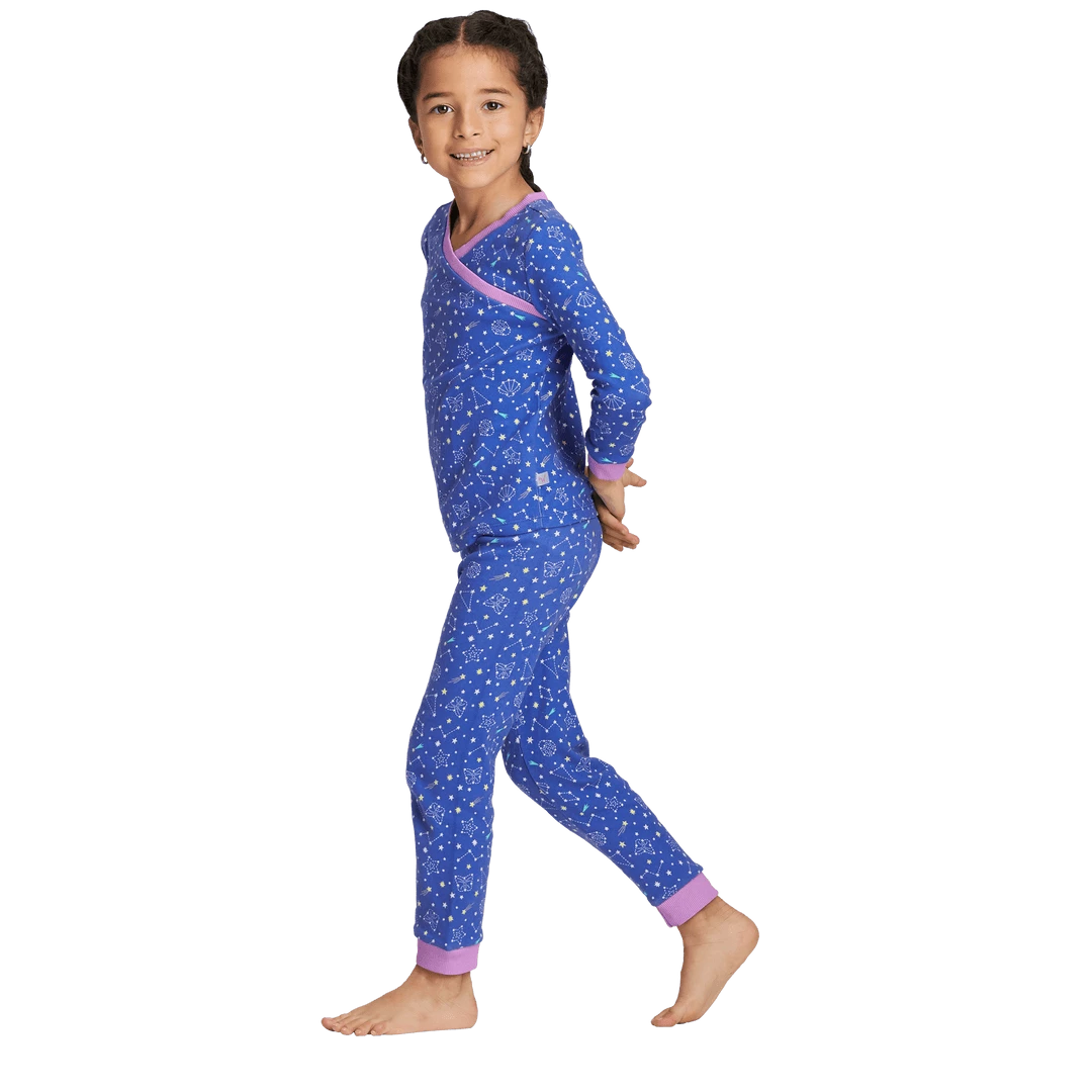 Girls can sleep tight in these PJs with WellieWishers™-inspired night sky constellations. The pajama top and pajama pants are just like the ones the WellieWishers dolls wear. Plus, the yellow stars glow in the dark! Cotton. Imported. Blue. Sizes 4-7