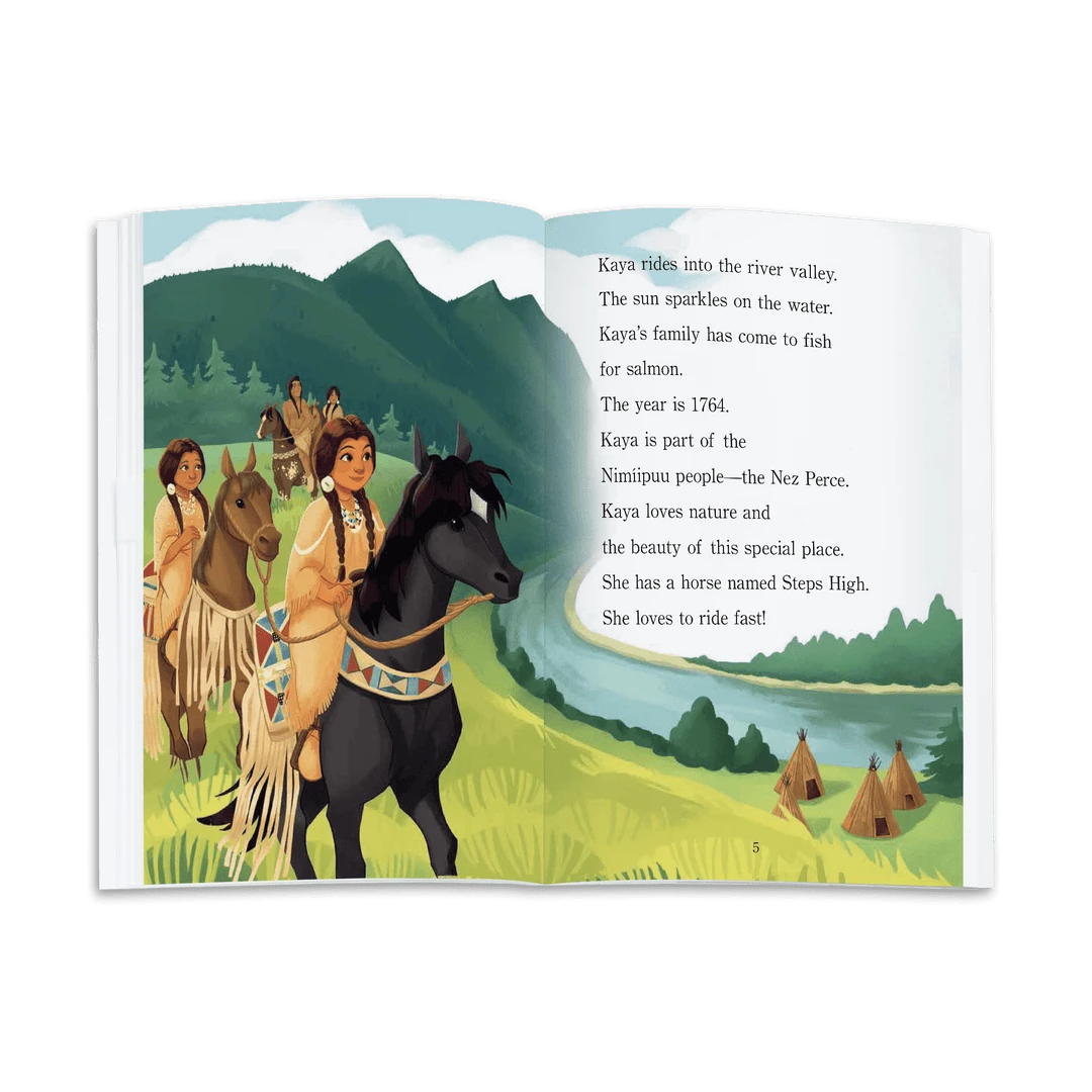 Kaya is a Nez Perce girl who takes pride in helping out and supporting the tribe—and also in her beloved horse, Steps High. But when she chooses racing her horse over family responsibilities, Kaya has to prove herself to earn her tribe’s respect. Kaya’s story of adventure in the wilderness is sure to engage today’s readers as they learn what it was like to be a Native American girl in 1764 in this Step 3 Step into Reading leveled reader, based on an American Girl story by Janet Shaw. Includes a pull-out poster! 32 pages. Paperback. Author: Emma Carlson Berne.