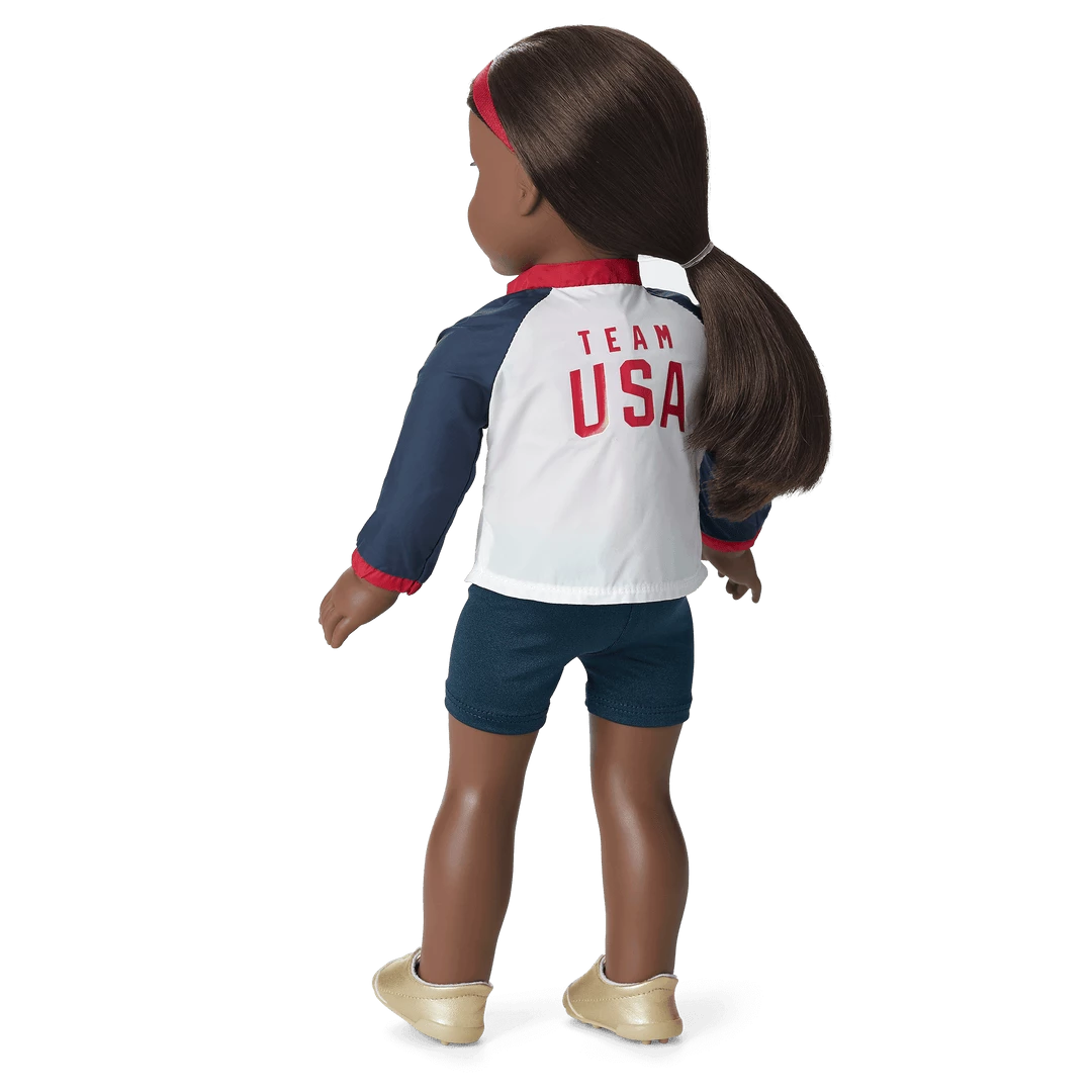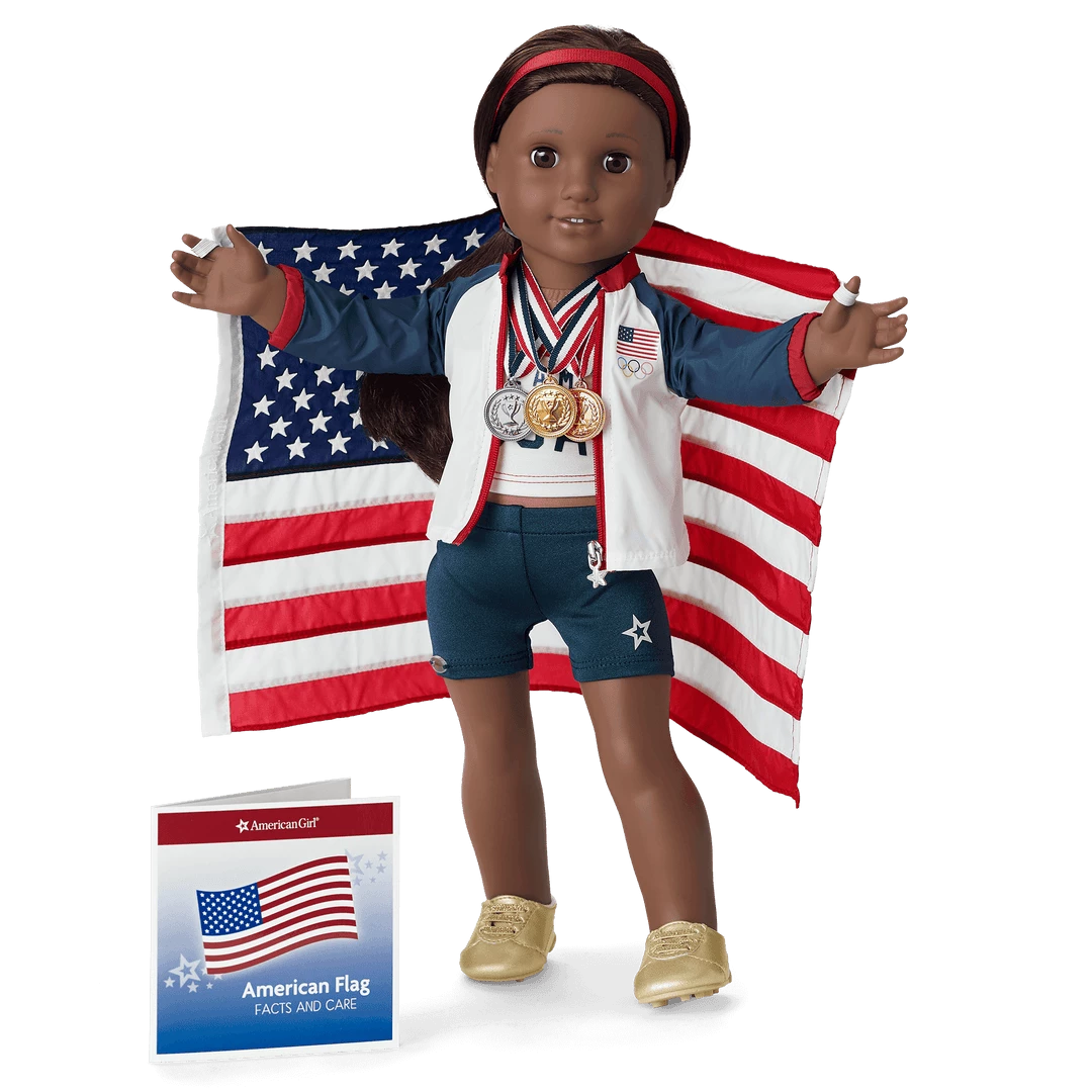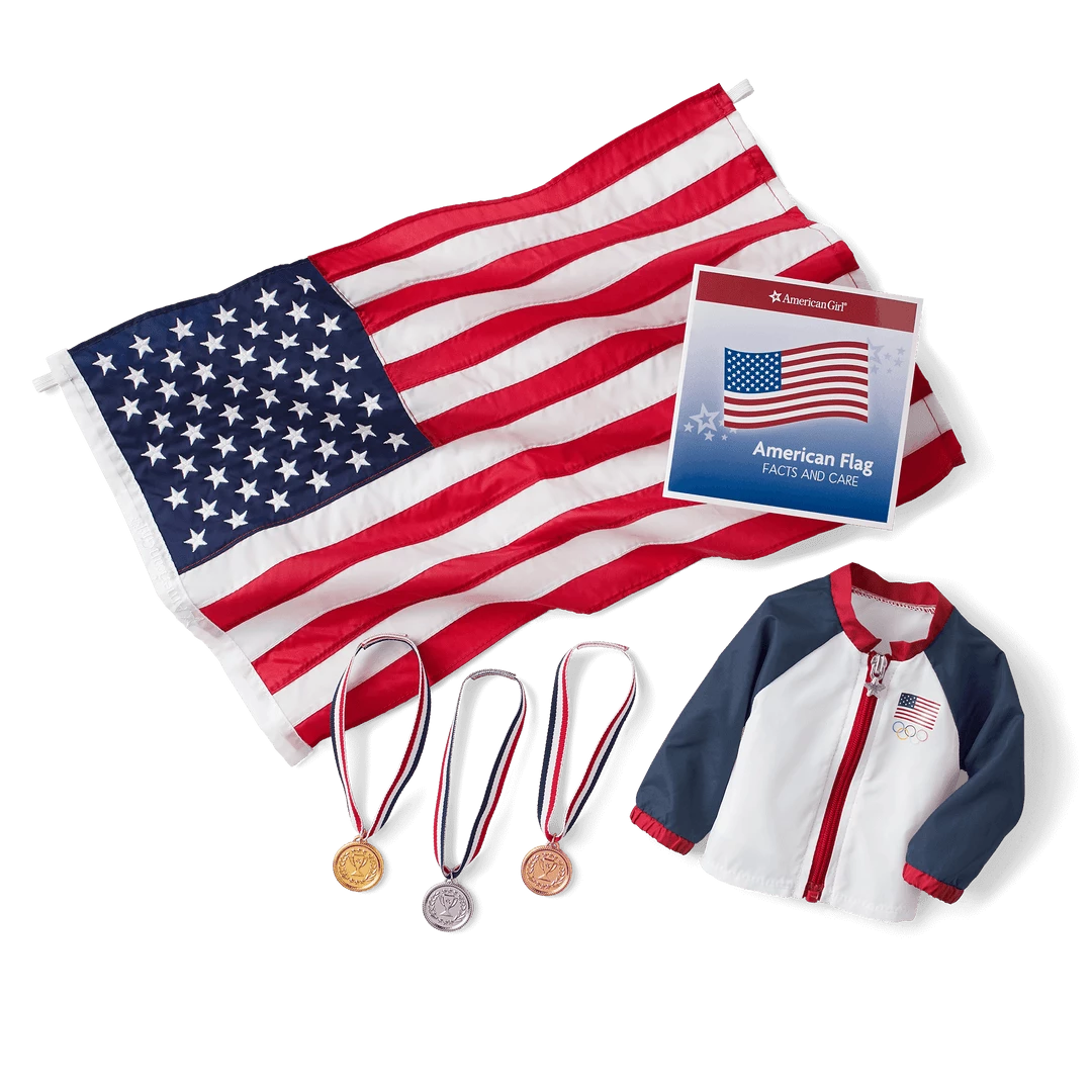 Whether her doll earned bronze, silver, or gold, they’ll be proud to represent the USA with this set that includes medals made of real metal. It features: