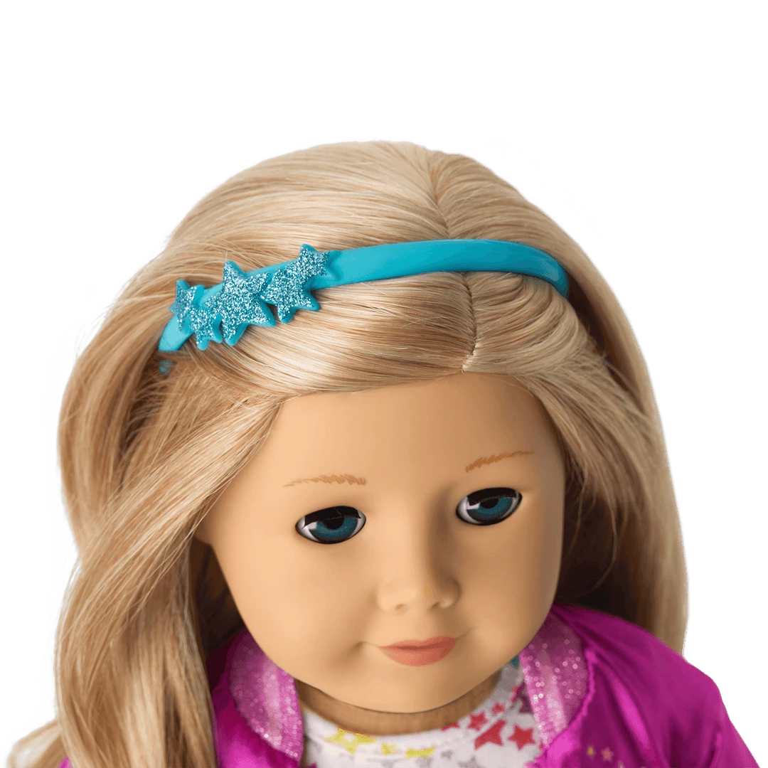 - A blue headband with a cluster of glittery stars