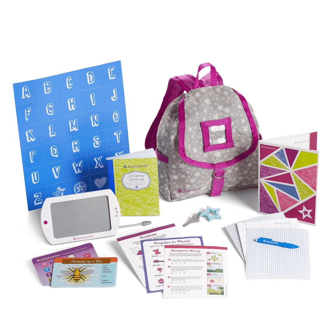 School Backpack Set: A backpack, a pretend tablet, a notebook, a folder, and more supplies to pack inside!