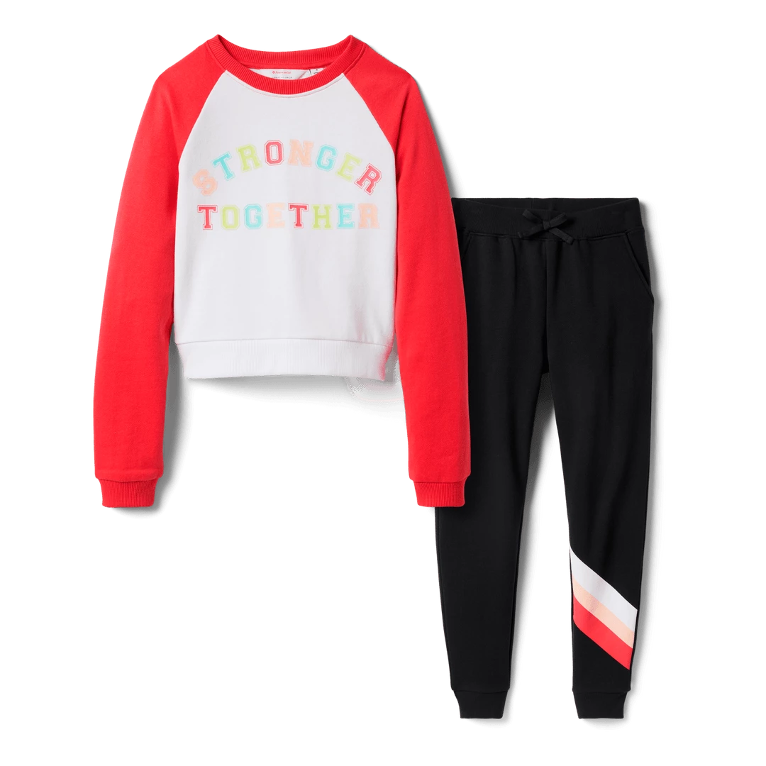 American Girl® x Janie and Jack: Maritza’s™ Stronger Together Sweatshirt for Girls: A raglan-sleeved French terry sweatshirt with a “Stronger Together” multicolored graphic screen-printed on the front. Cotton/polyester. Imported. Sizes 6-16