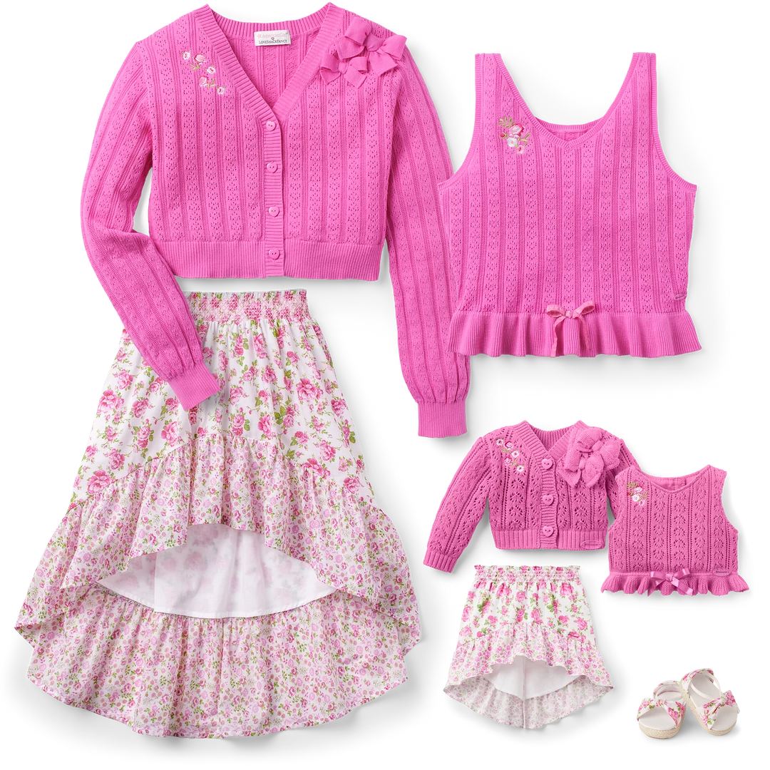 Girls can match their dolls for sweet, sunny springtime celebrations! These wear-anywhere outfits, designed in collaboration with LoveShackFancy, feature: